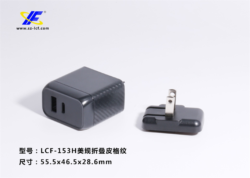 PD快充 45W折疊腳皮格紋充電器外殼-LCF-153