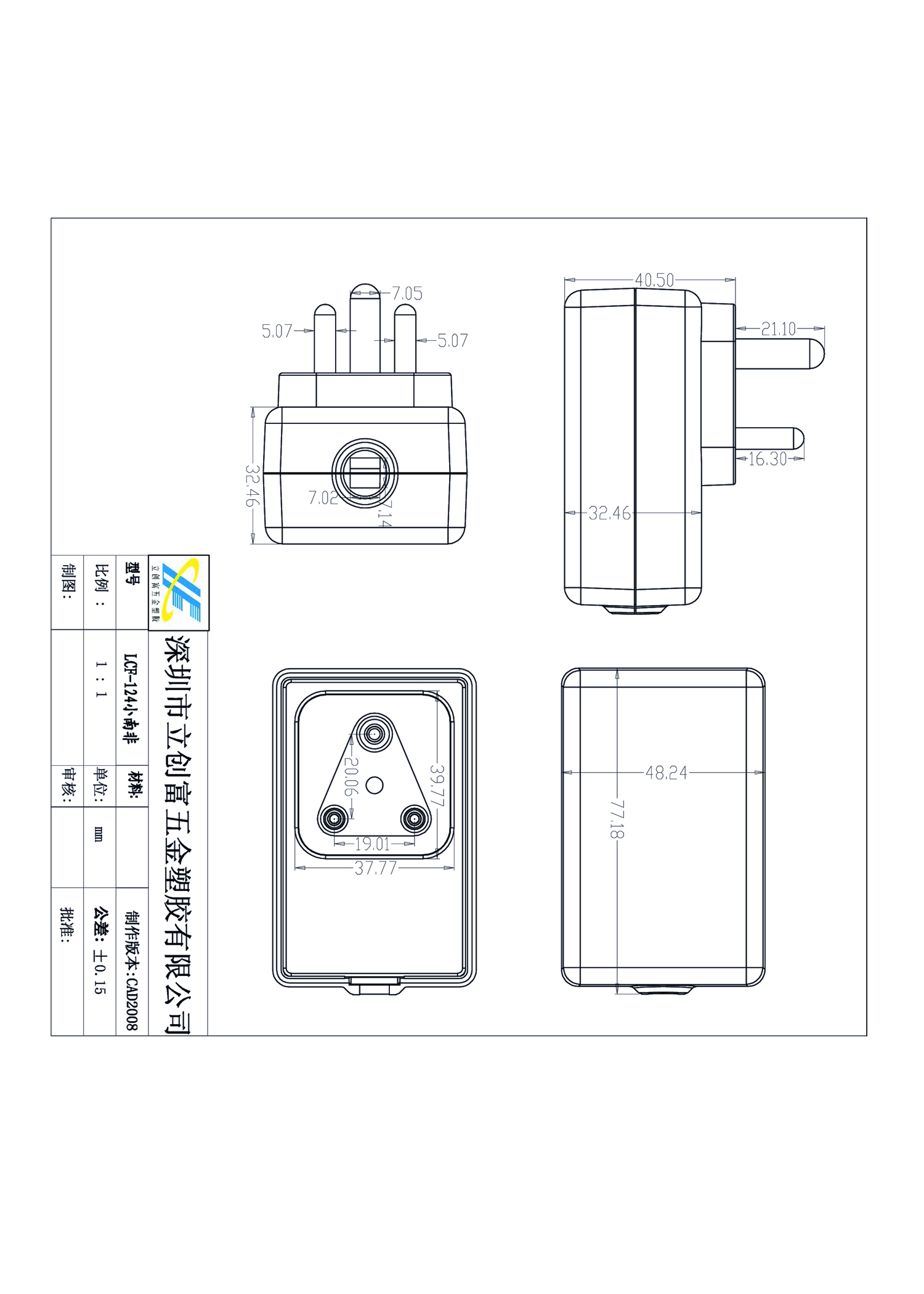描述:12W充電器小南非外殼 采用PC塑料材質做的,符合ROHS環(huán)保標準,性能好,耐高溫,尺寸:77*48*32.5mm規(guī)格:中/美/歐/南非規(guī),廣泛應用于多種類型的充電器外殼。